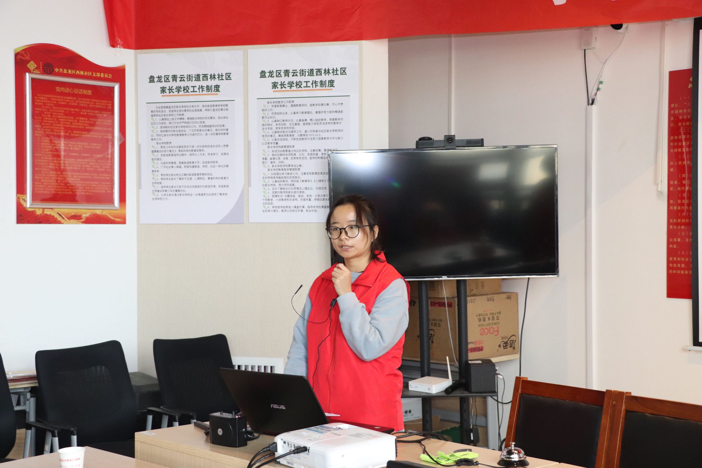 首先,公司志愿者安排家长和小朋友们有序入座。而后,由两位院青协志愿者周敏、罗又方以PPT的形式对本次活动主题进行讲解。将本次活动的主题以幽默风趣的方式传达给小朋友们。